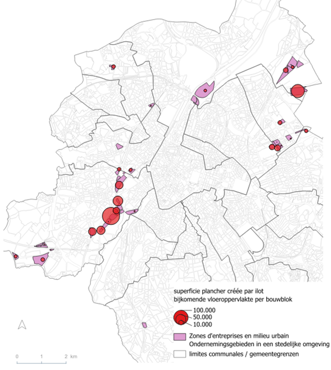 Les différentes ZEMU ont chacune leur propre dynamique. Ainsi, la zone autour d’Érasme n’était que peu bâtie en 2014 et la densification urbaine y est restée limitée depuis lors. Dans les deux plus grandes sous-zones, autour de l’OTAN et autour du Quai des Usines, peu de choses ont changé.