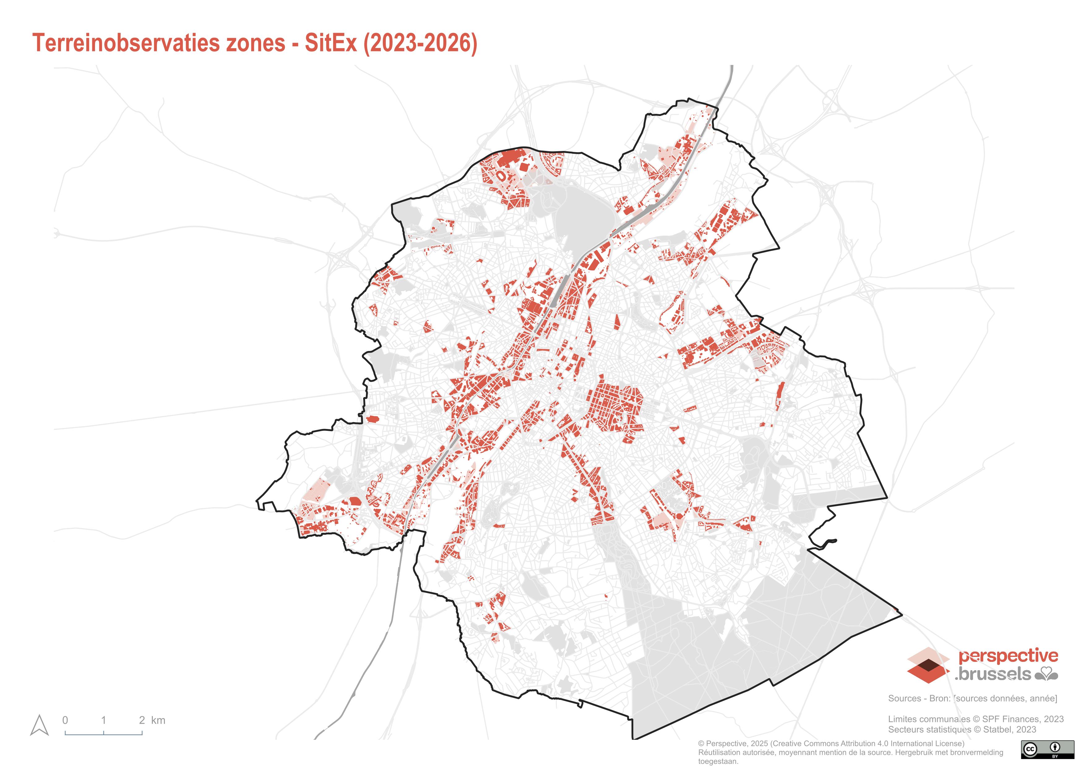 De SitEx-inventaris wordt gevoed door terreinwaarnemingen op bepaalde delen van het Brusselse grondgebied. Deze waarnemingen leveren nauwkeurige en actuele informatie op over strategische zones.